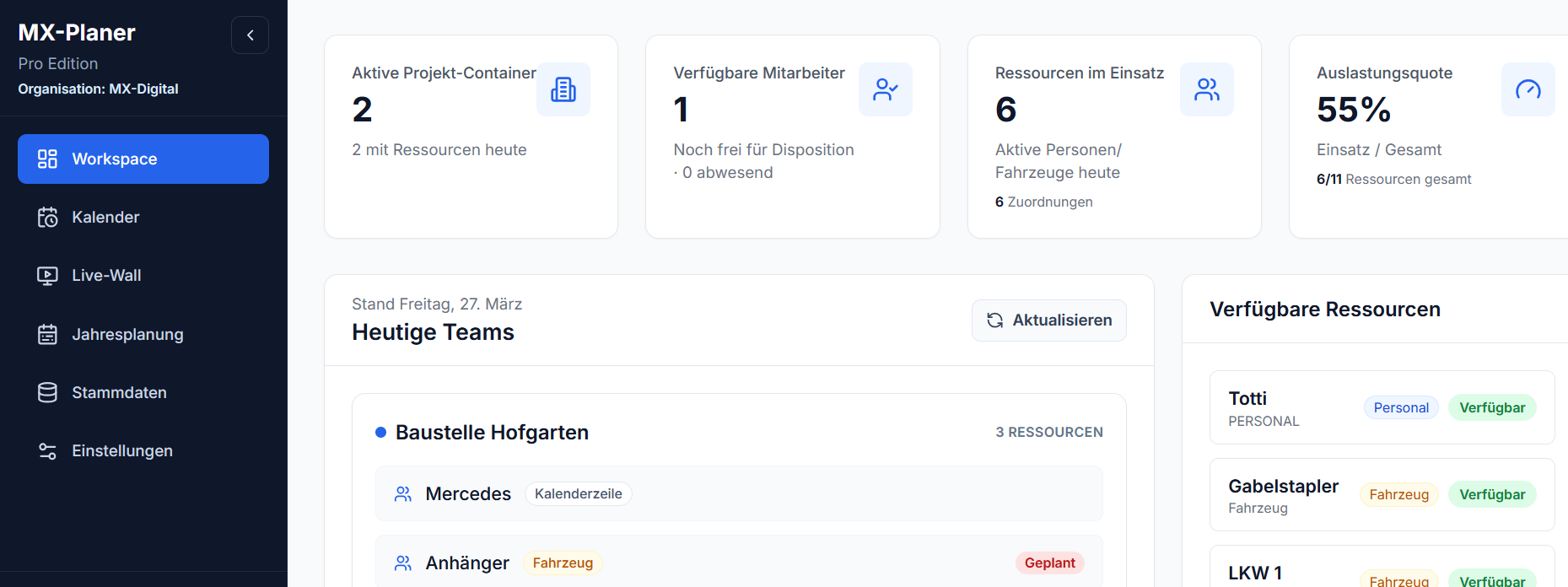 Mit dem MX-Planer organisieren Sie Ihre Projekte, Teams und Termine zentral an einem Ort.